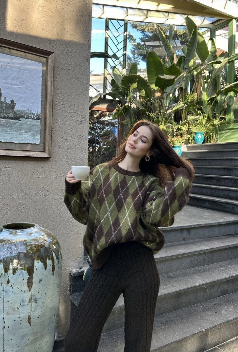 Baklava Desen Kadın Premium Triko Kazak